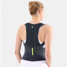 Esnek hava alabilen, terletmeyen antialerjik misinalı kumaştan üretilmiştir.Elastik yapısı ile sırt ve bel bölgesinde bulunan dokulara kompresyon sağlayarak kasları güçlendirir. Sırtta bulunan plastik balenler yardımı ile sırt omurlarının hareketini uygun şekilde kısıtlayarak istirahate alır.