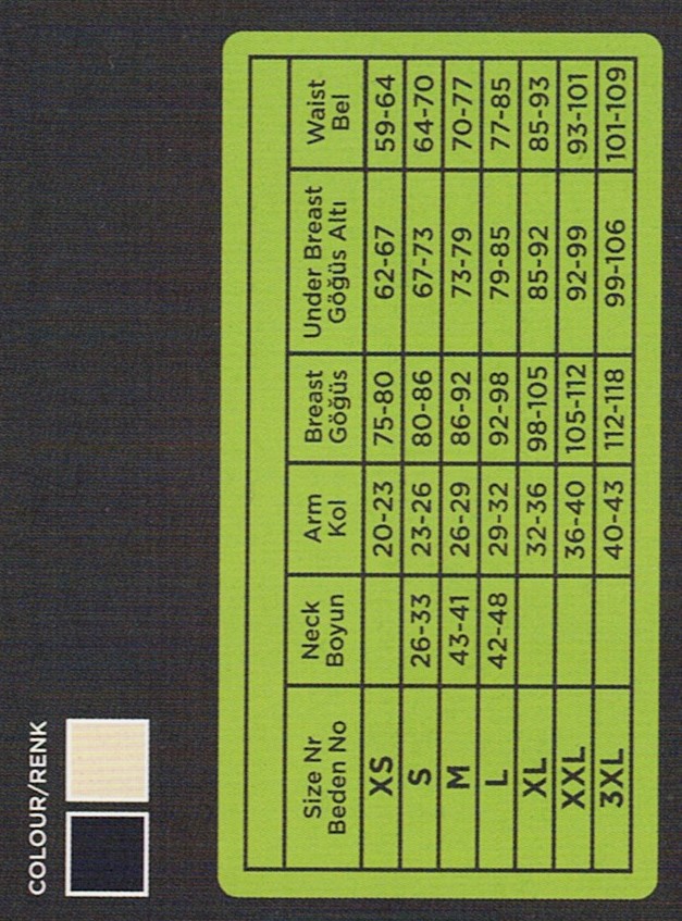 Ürün, omuz ve kol liposuction operasyonlarından sonra kullanılan bileğe kadar uzanan bir kılıftır. Arkadan 3 kademeli ayarlanabilir kopça ve önceden ayarlanabilen opsiyonel şeffaf askı ile combine edilmiştir.